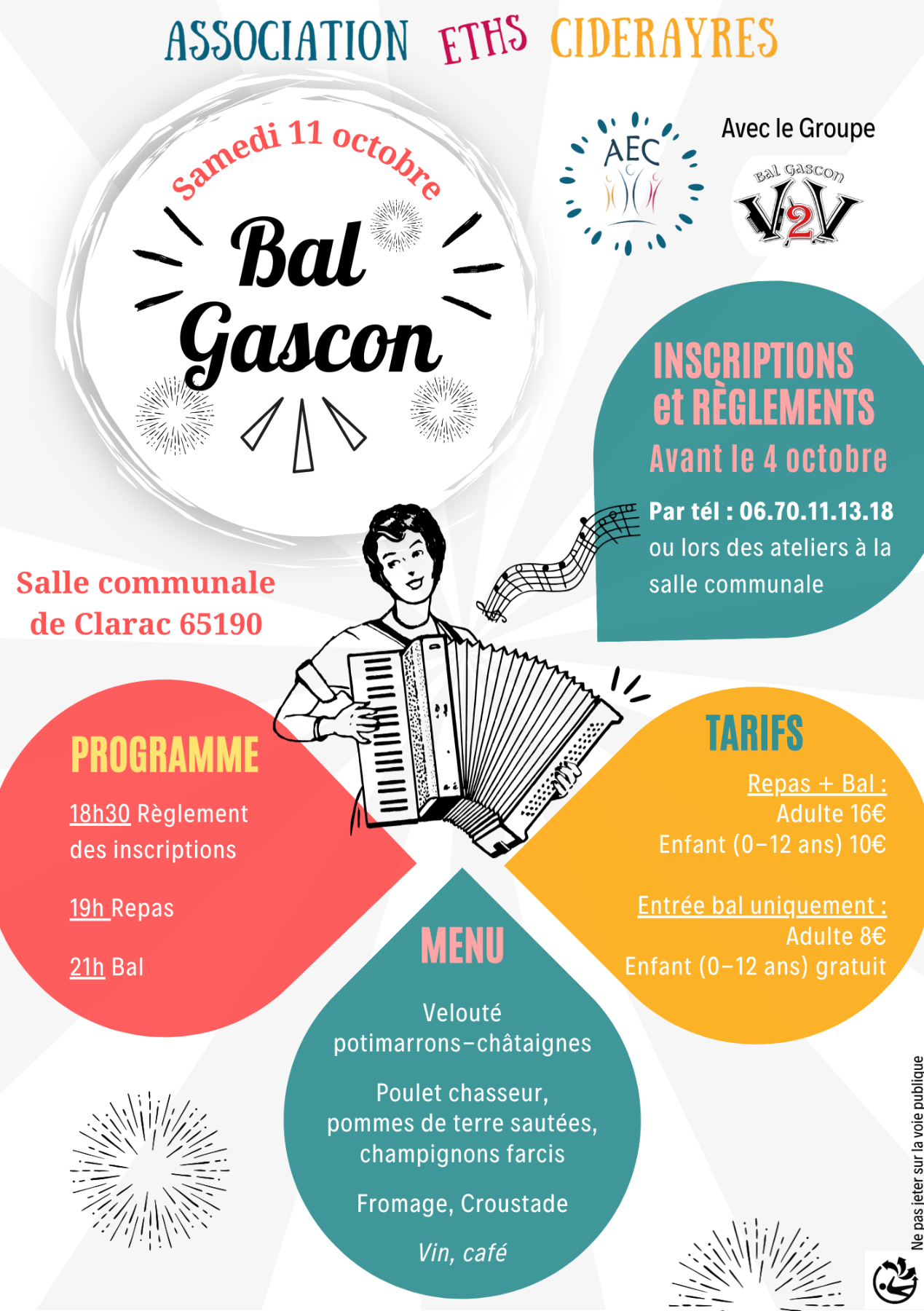 Entrée bal uniquement : Adulte 8€ / Enfant (0-12 ans) gratuit